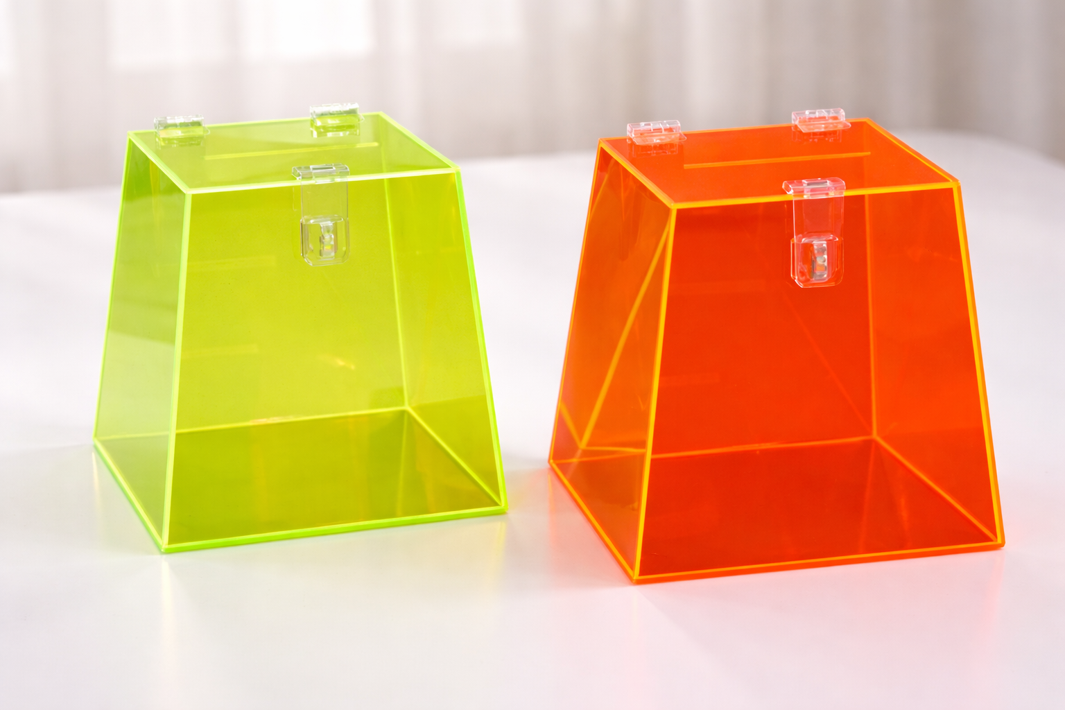 • Urnas em acrílico personalizadas com corte e aplicação de logo